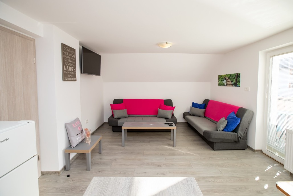 Apartma z balkonom vključuje popolnoma opremljeno kuhinjo z mikrovalovno pečico, pomivalnim strojem in s hladilnikom, apartma ima lastno kopalnico s prho. Iz sob lahko uživate v pogledu na gore in vrt.