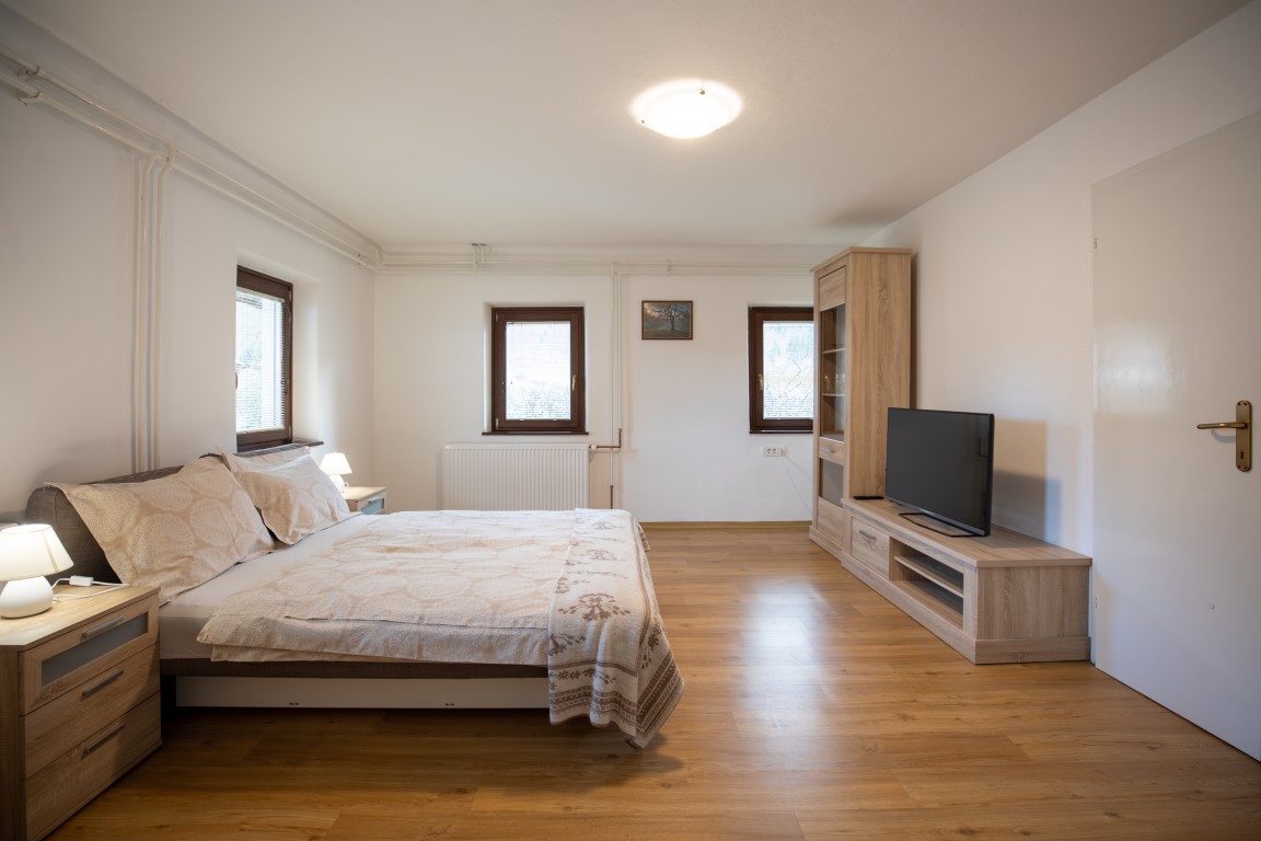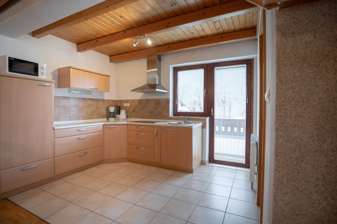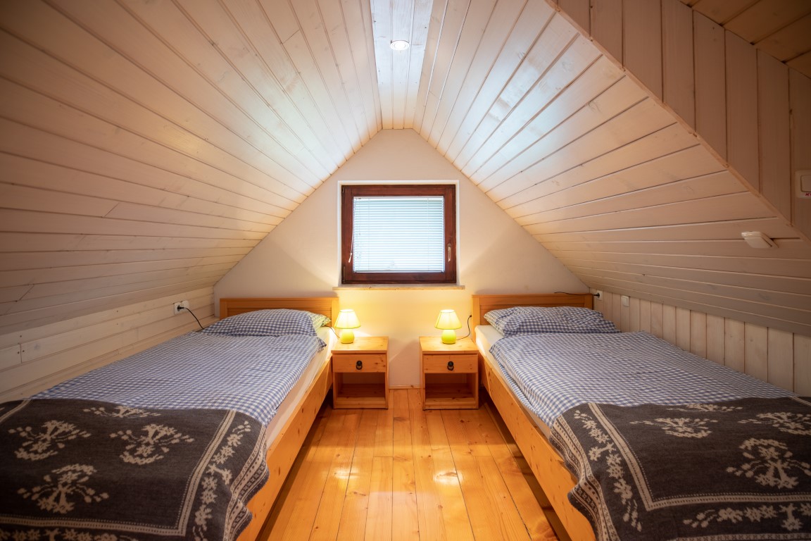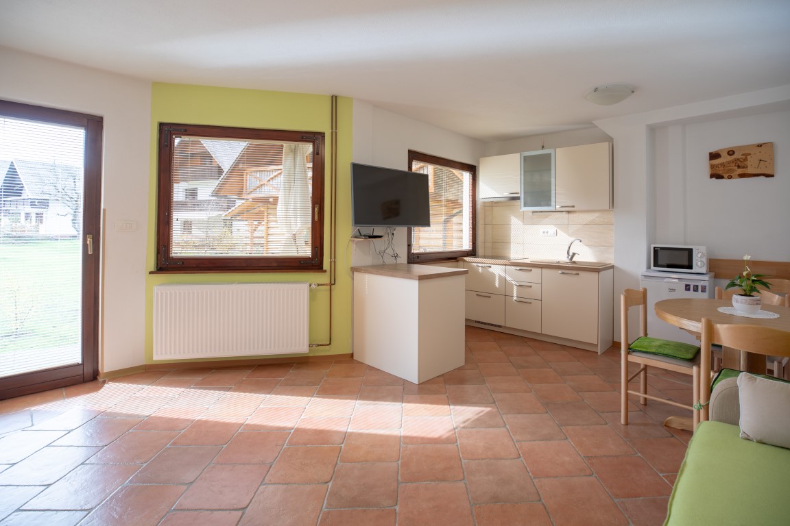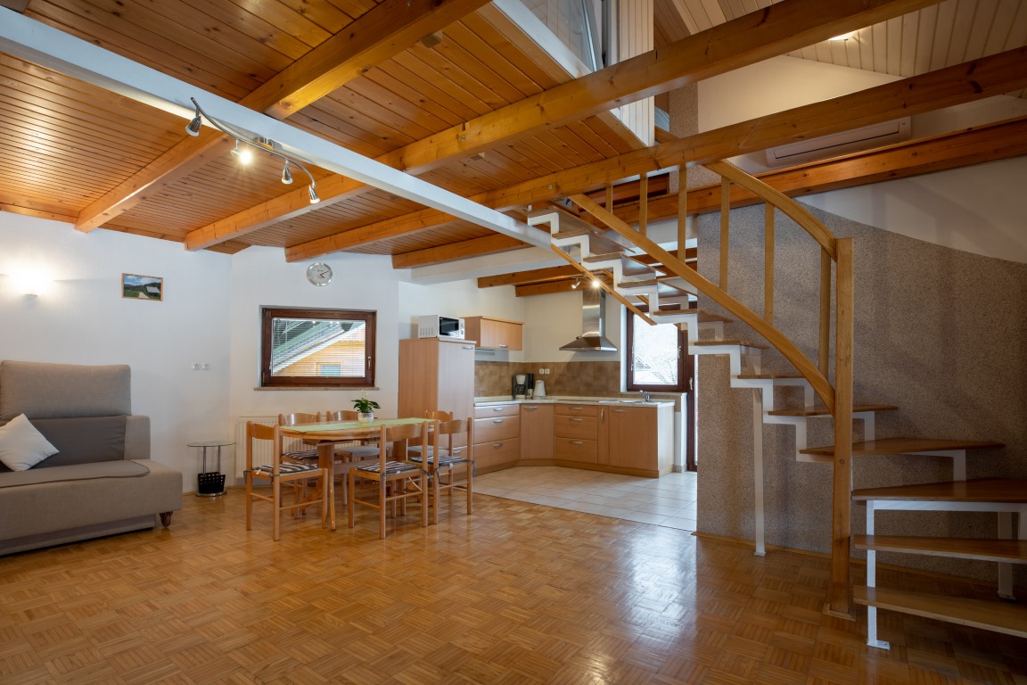 Apartma je zelo prostoren, V zgornji etaži sta dve spalnici, v spodnji pa polno opremljena kuhinja, dnevni prostor ter kopalnica. Iz balkona lahko uživate v čudovitem razgledu na okoliške gore.