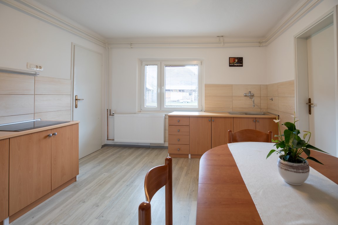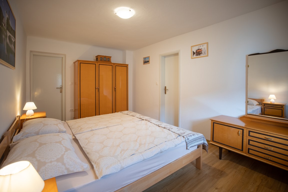 Apartma je primeren za družine, nahaja se v pritličju in ima lasten izhod na vrt. Na voljo sta dve spalnici, polno opremljena kuhinja in kopalnica.