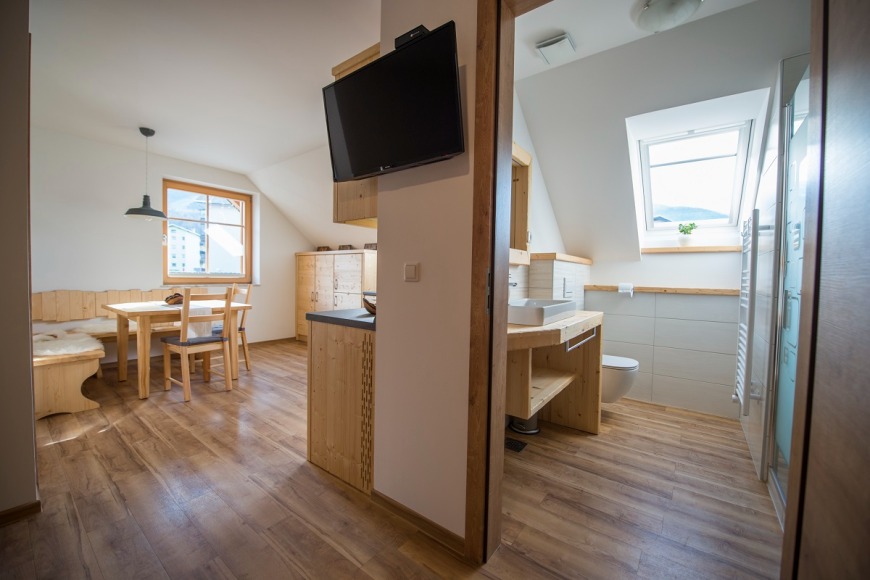Apartmaji Štrud´l Bohinj se nahajajo v Bohinjski Bistrici, v samem centru nad Gostilnico Štrud´l, kjer ponujamo ˝ta pravo˝ bohinjsko hrano. Apartmaji so sodobni, poudarek je na pohištvu, ki je izdelan iz masivnega lesa, brezplačni brezžični internet ter parkirišče.