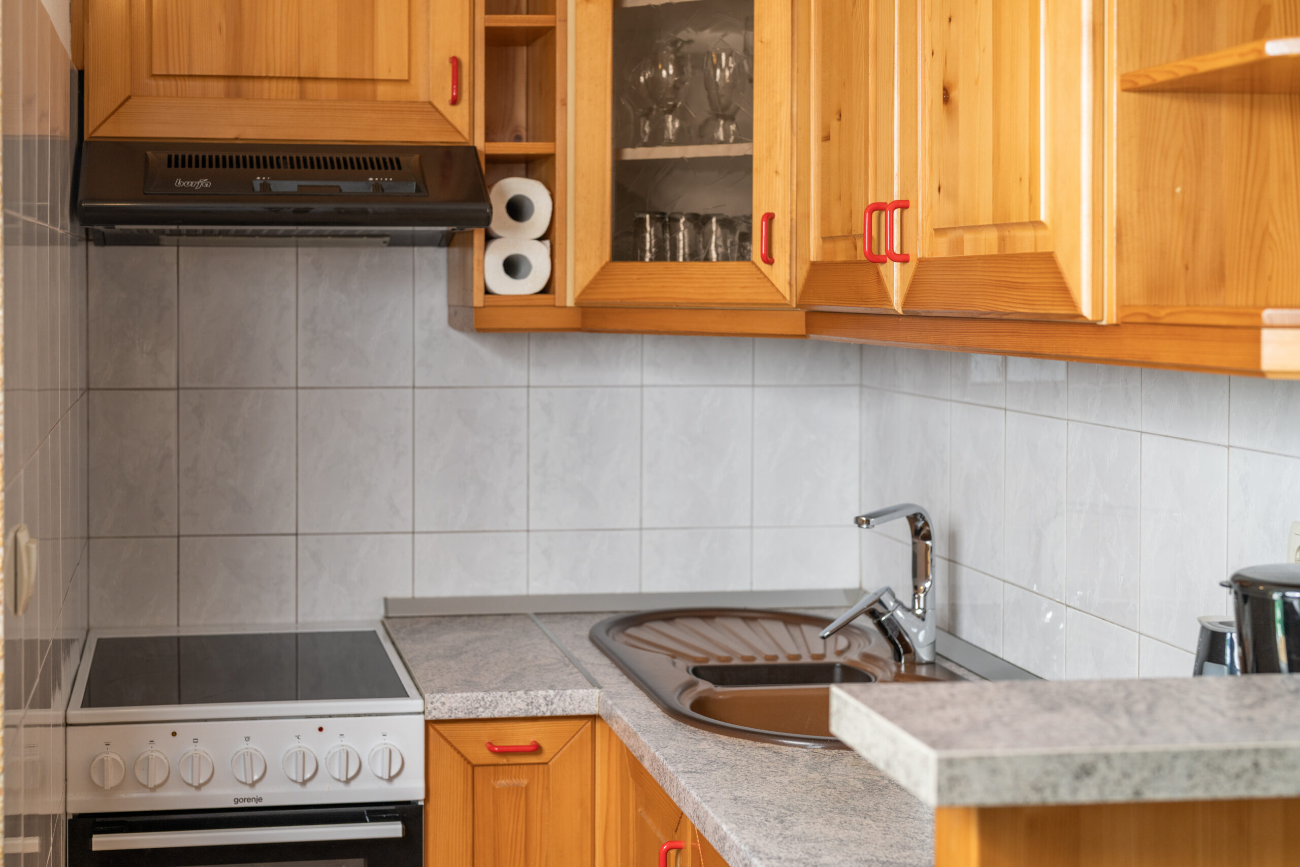 Hiša vključuje televizijo z ravnim zaslonom, popolnoma opremljeno kuhinjo z aparatom za kavo in lastno kopalnico s prho ter sušilcem za lase.