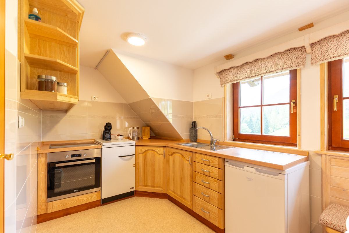 Nastanitev ima 2 spalnici, kopalnico s prho, popolnoma opremljeno kuhinjo, TV z ravnim zaslonom, balkon in teraso. Gostje lahko uporabljajo tudi opremo za peko na žaru. Hiška ponuja prekrasne razglede na okoliške hribe, kar vam omogoča resnično sprostitev v naravi.